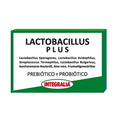 LACTOBACILUS PLUS INTEGRALIA é um suplemento dietético destinado ao benefício da flora intestinal. O produto é composto por uma grande variedade espécies bacterianas positivas ou comensais (que beneficiam nosso dos efeitos que produzem). Além disso, o produto é complementado por Frutooligossacarídeos e Aloe vera que regulam as funções intestinais e melhoram as condições de digestão dos alimentos, sendo alimentos para o crescimento e desenvolvimento desta flora intestinal .
