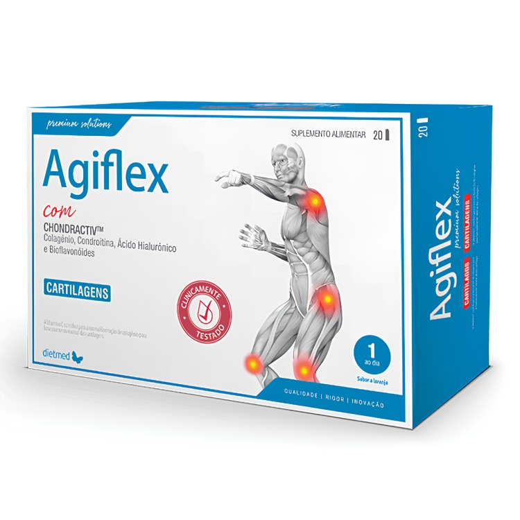 Água, frutose, concentrado de uva, colagénio marinho hidrolisado*, sulfato de condroitina*, Chondractiv™ (contendo 55% de Colagénio Tipo II, 12% de Sulfato de Condroitina e 2% de Ácido Hialurónico), ácido L-ascórbico, bioflavonóides, aroma de laranja, regulador de acidez: ácido cítrico, conservante: sorbato de potássio, naringina, hialuronato de sódio. *Produto à base de peixe.