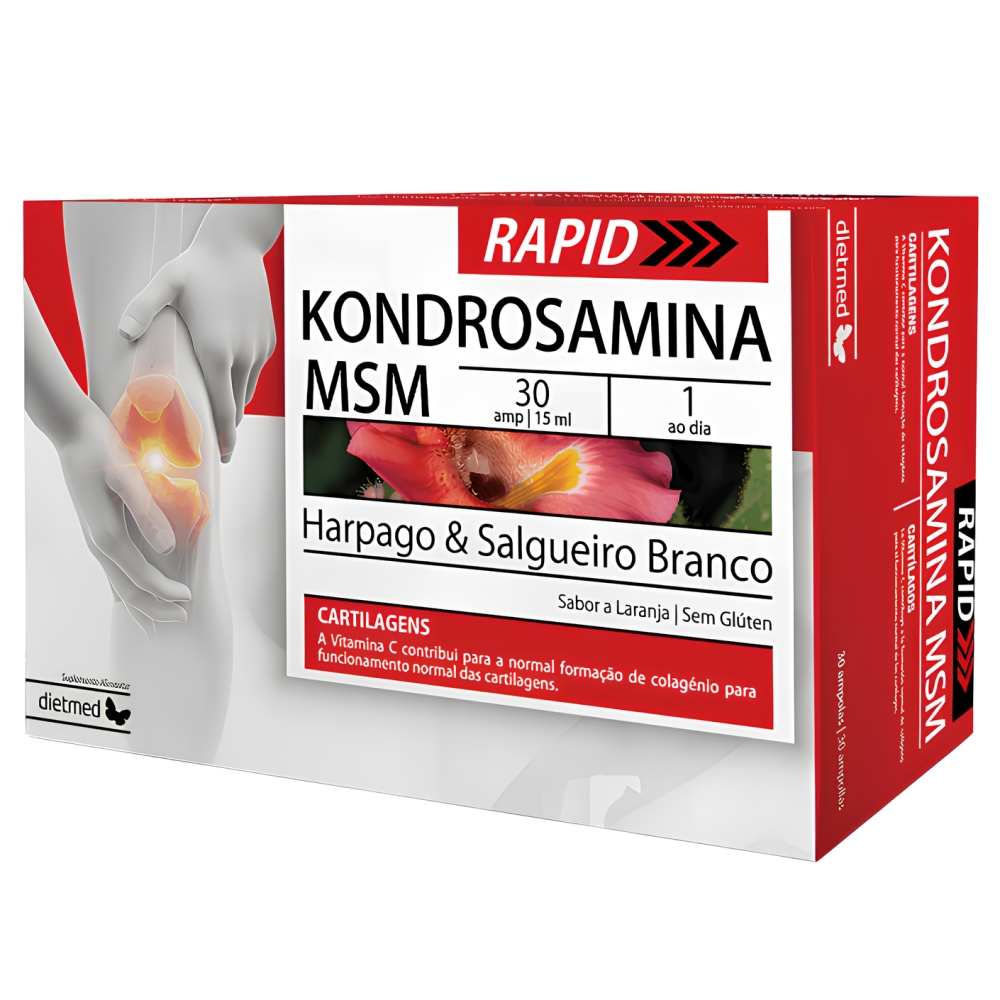 Água, frutose, sulfato de glucosamina 2KCl*, sulfato de condroitina**, metilsulfonilmetano (MSM), Harpagophytum procumbens (harpago; extrato glicerinado das raízes secundárias), Salix alba (salgueiro branco; extrato glicerinado da casca), ácido L-ascórbico, aroma de laranja, conservante: sorbato de potássio, regulador de acidez: ácido cítrico. *Produto à base de crustáceos. **Produto à base de peixe.