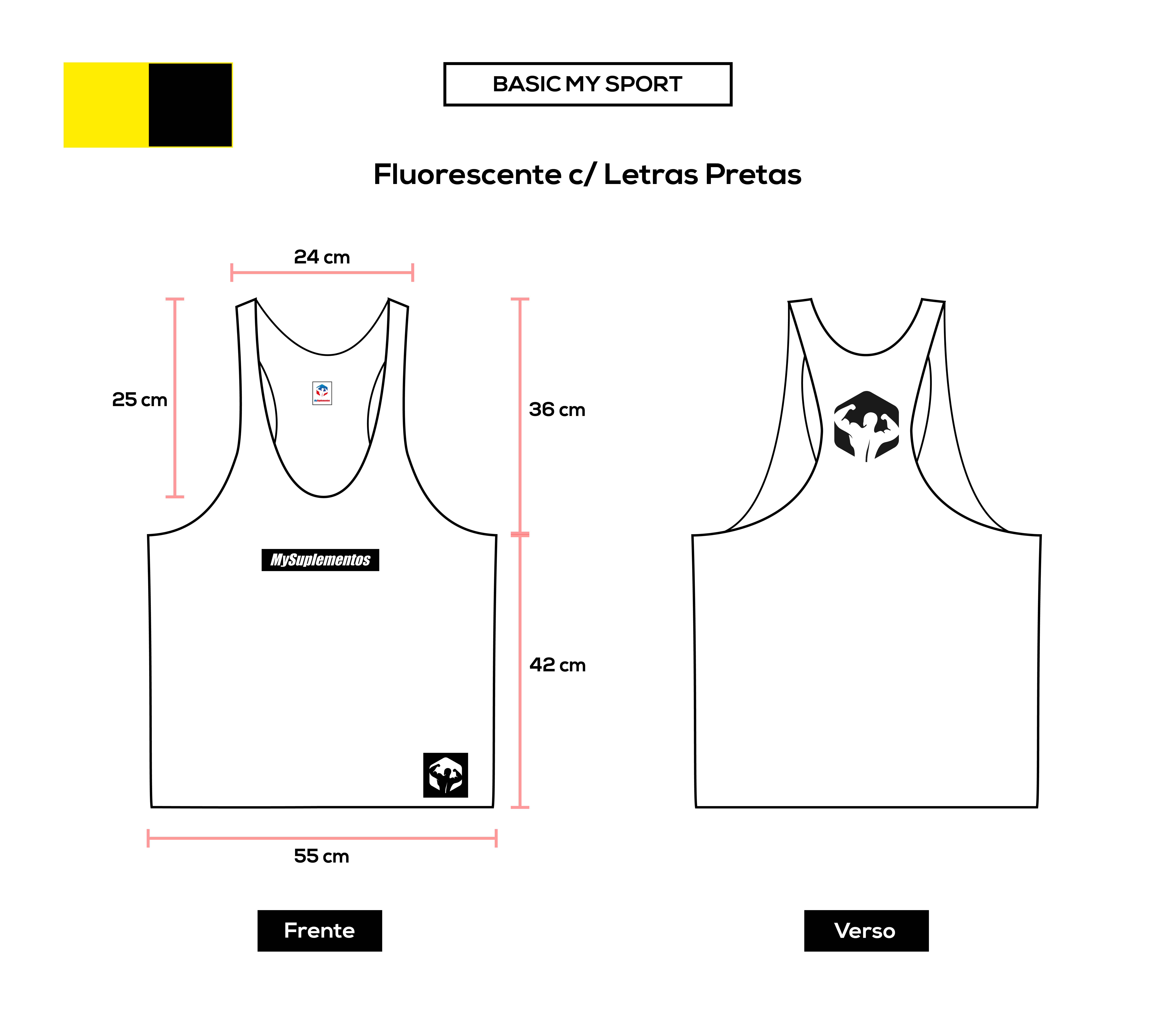 A frente é decorada com uma grande inscrição MYSUPLEMENTOS e com o nosso logotipo. Na parte de trás, entre as omoplatas, encontra o nosso logotipo.